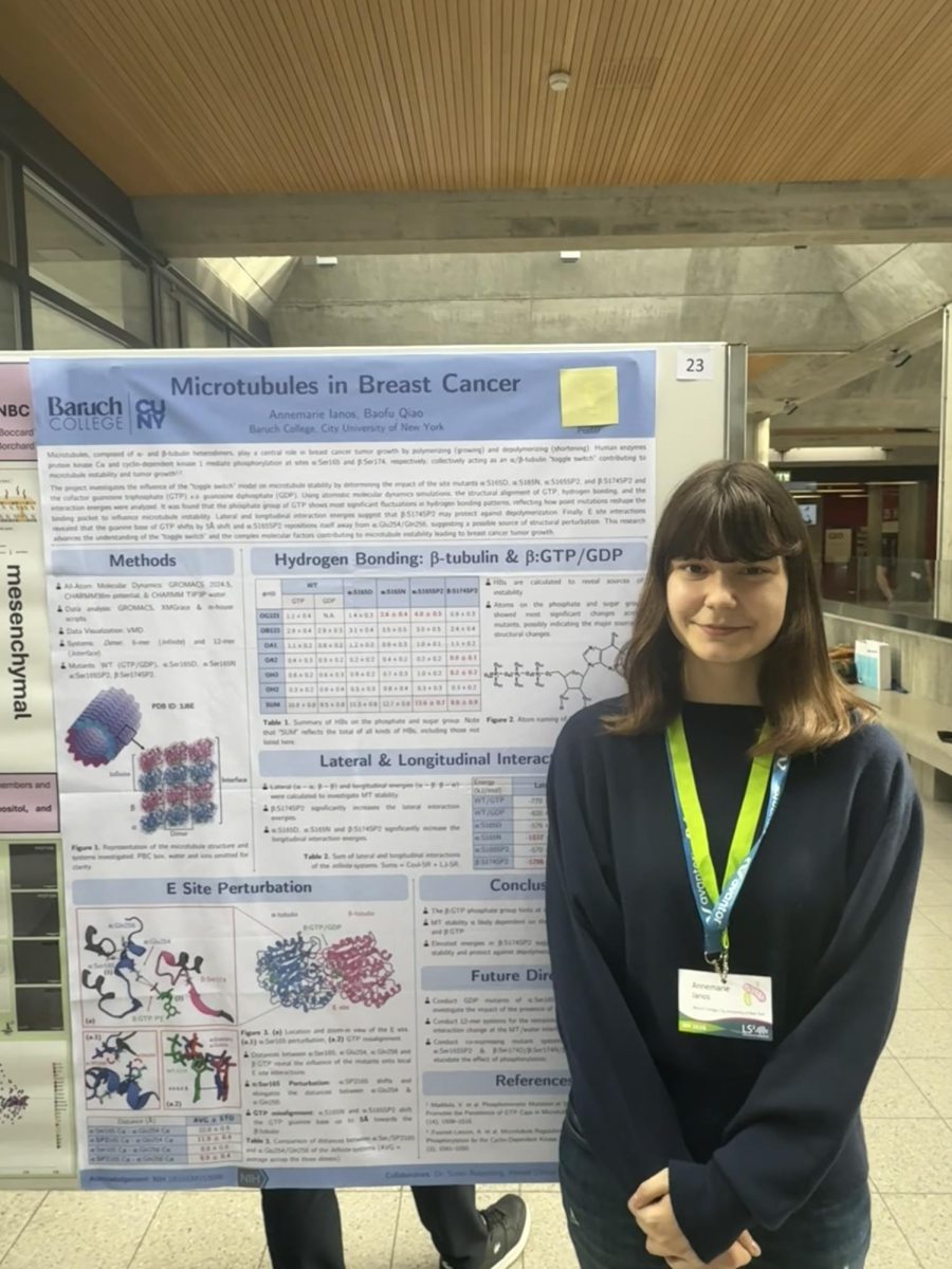 Annemarie Ianos is a senior at Baruch College majoring in biomedical sciences and pursuing research in computational chemistry with Assistant Professor Baofu Qiao. Recently, she presented her research projects at the Life Sciences Switzerland Annual Meeting, one of Switzerland’s leading conferences in biological sciences.